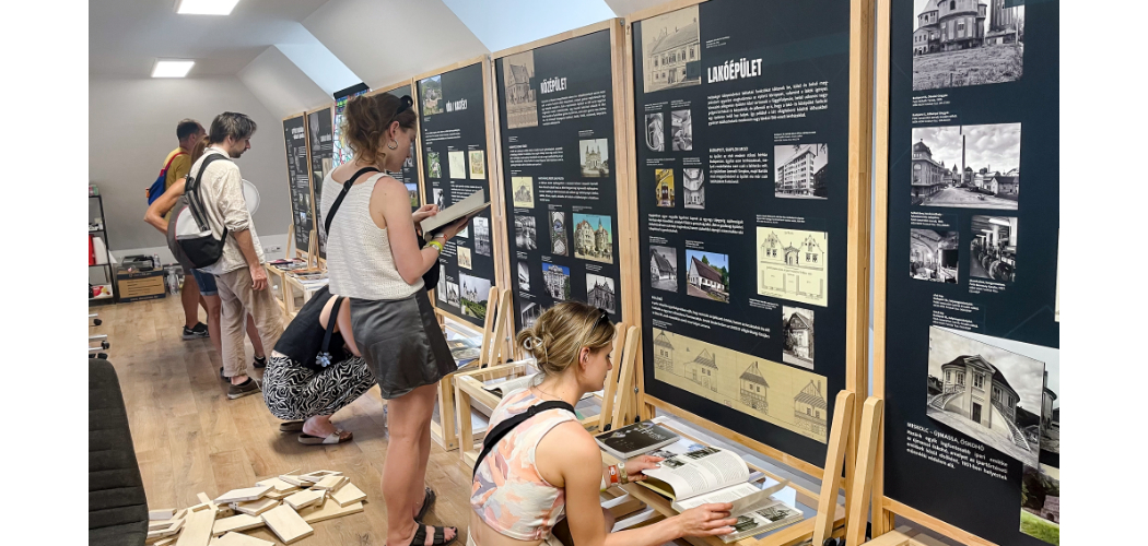 A Magyar Építészeti Múzeum és Műemlékvédelmi Dokumentációs Központ kiállítása a MűvészVölgy Kúria tetőterében. Fotó: Kovács Evelin, 2024