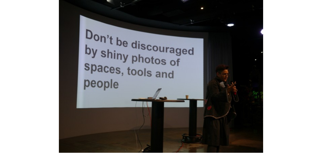 Deborah Hustic, a Radiona szervezet kreatív vezetője az alkotóterek kialakításának elméleti megalapozásáról tartotta előadását. Mondataival bátorította azokat is, akiknek egyelőre nincs azonnal lehetősége teljes és új alkotótereket létrehozni. Indulásként csupán helyszínre, összepiszkolható asztalokra és székekre, valamint néhány alapvető szerszámra van szükség. Ami viszont egyáltalán nem hiányozhat, az az emberi oldal, hiszen a helyszín semmit sem ért ember nélkül. Ezzel nem csupán a résztvevőkre utalt, hanem az alkotótér és az ott folyó kreatív folyamatok működtetéséért elkötelezett munkatársakra is: a vezetőtől a műhelygazdán át egészen a takarítóig. A múzeumi makerspace-nek pedig igenis van létjogosultsága, ha más nem, tudománytörténeti összefüggésben.