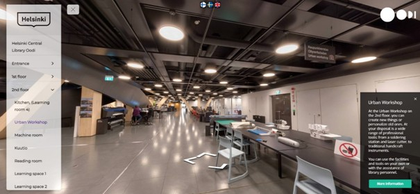 A könyvtár 2. szintje virtuális túrán. (Forrás: Oodi 360)
