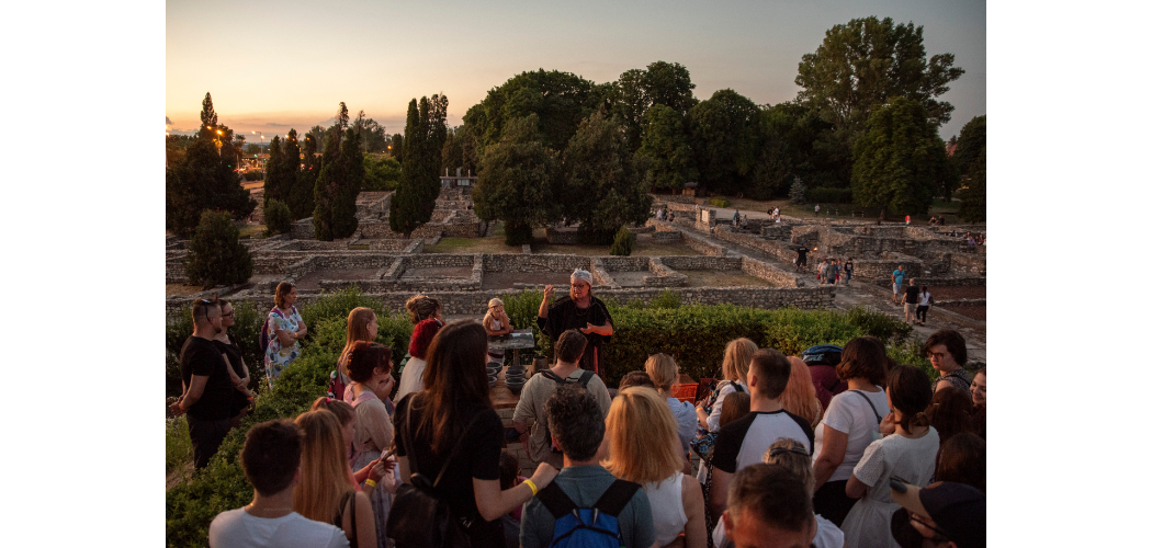 Az este során Aquincumba látogatók szemtanúi lehetnek, ahogy összecsapnak a gladiátorok, és ahogy megelevenedik egy római lakóház. Az eget kémlelőket interaktív csillagászati bemutató várja. A kisebbek kincskeresőn és ügyességi játékokon vehetnek részt, de kézműveskedhetnek is.A felnőttek elmerülhetnek az ókori wellness történetében, vagy épp Mithras kultuszának rejtelmeiben. A programot tűzzsonglőrbemutató és fáklyás romkerti vezetés zárja.