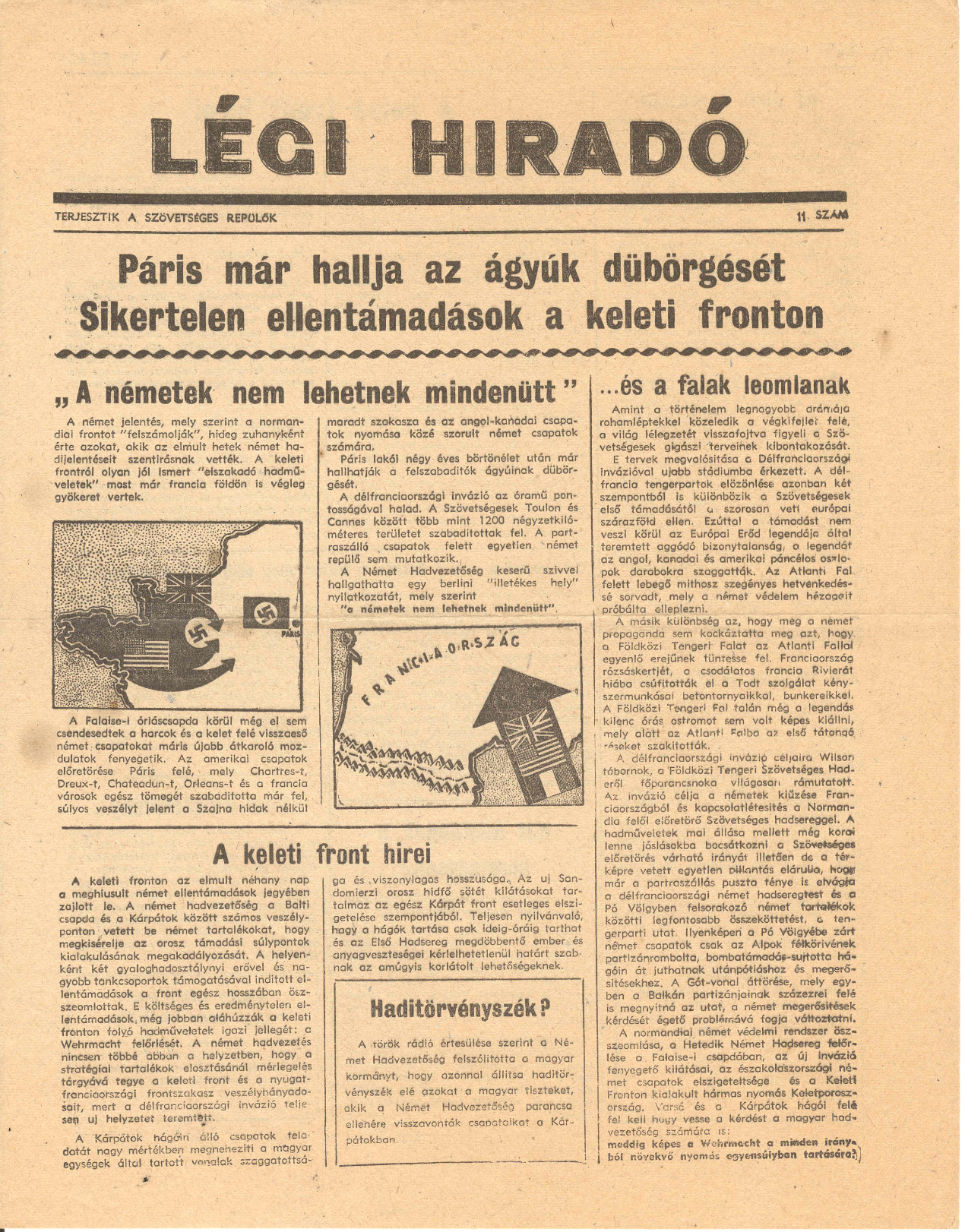 A szövetséges repülők által Magyarországon terjesztett röplap, 1944. Leltári szám: 99.391.1/Nyt