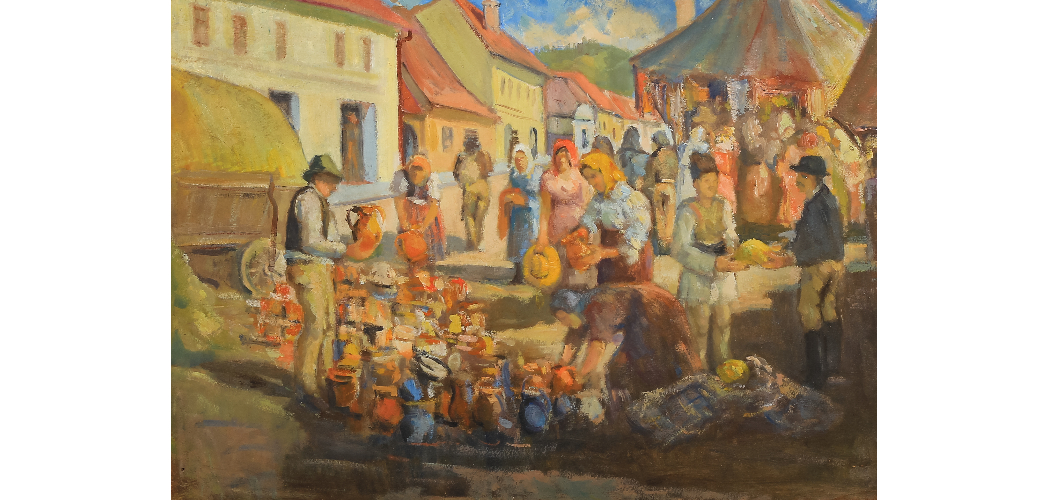 Karácsony János: Piac, é. n. (fénykép alapján készült olajfestmény)