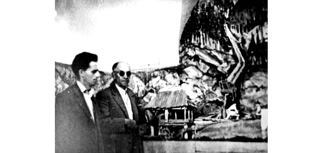 Tarisznyás Márton és Karácsony János, az erdő néprajza témához készült kiállítási installáció előtt