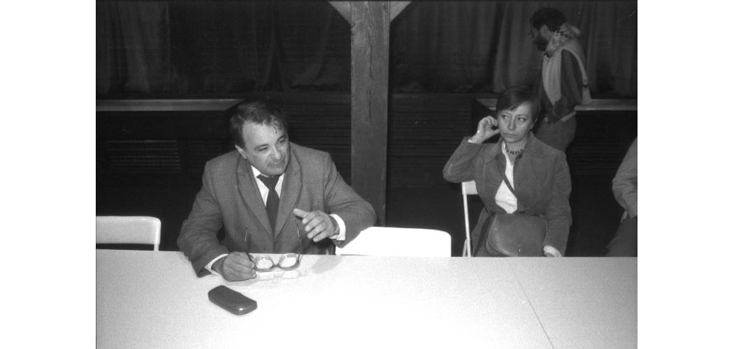 Bezerédy Győző tájékoztatja az újságírókat a Tímárházban megnyílt kiállításról (1986)