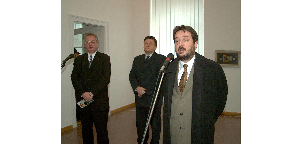 A Modern Magyar Képtár II. megnyitója 2001-ben. Huszár Zoltán, Bokor Béla, Rockenbauer Zoltán