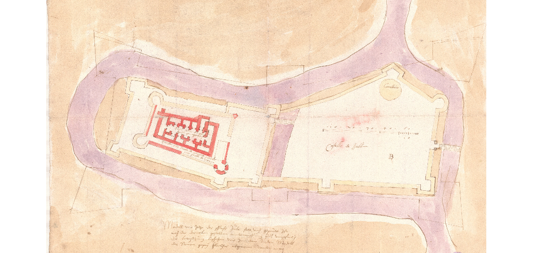 Paolo Mirandola, itáliai várépítő mester 1562-ben készített rajza a gyulai várról. Az ábrázolás a palánkerődítések ostrom előtti állapotának rögzítése mellett a földbástyák átépítésére tett javaslatokat is bemutatja. Az ásatások tanúsága szerint a hosszanti palánkfalak tagolását és a bástyák teljes átépítését célzó tervek sosem valósultak meg.