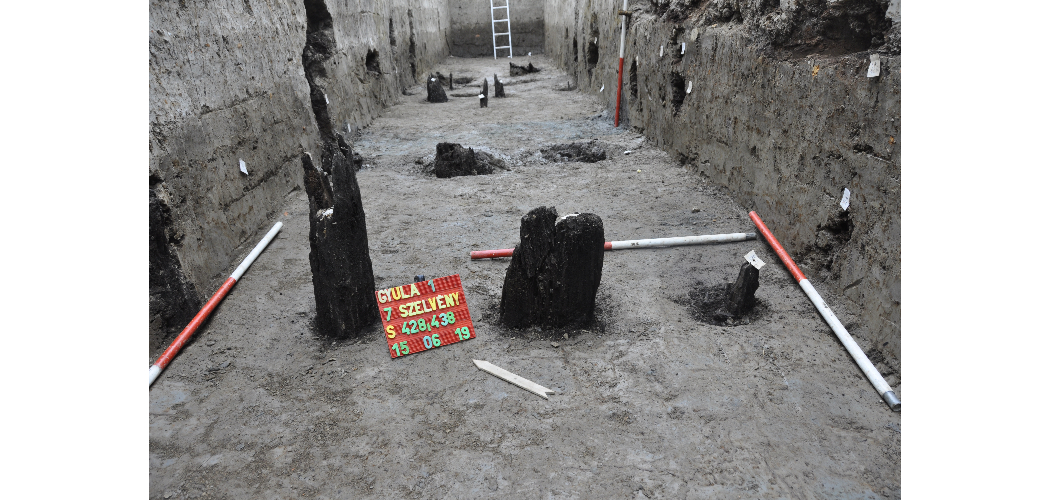 A palánkerődítést alkotó egyes tölgyfacölöpök mélyebben fekvő részeit a talajvíz konzerválta. Az ásatásaink alkalmával az alacsony talajvízszint lehetővé tette a konzerválódott cölöpmaradványok kiemelését.