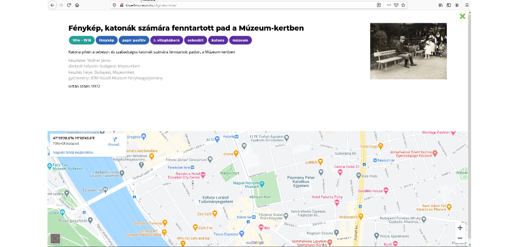Az adatbázisban az egyes dokumentumokat az általánosan használt metaadatok (készítő, megnevezés, készítés helye, készítés ideje) mellett tárgyszavakkal (címkékkel) is ellátták, és szükség esetén hosszabb tartalmi leírást adtak róluk a készítők. Amennyiben a dokumentum tárgya, a rajta ábrázolt esemény, esetleg a kiadó/készítő földrajzi koordinátához volt köthető, azt a rekordban rögzített geokód segítségével térképen is megjelenítették. Az adatbázisban lehetőség van szabad szavas, illetve a címkék használatával történő keresésre, a keresési tartománynak időkör vagy dokumentumtípus szerinti előzetes szűrésére, valamint a találatok időrend és ábécérend szerinti rendezésére egyaránt.