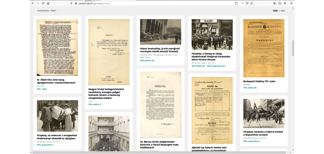 Az 1950-1970-es években a gyűjtési preferencia a korabeli elvárásoknak megfelelően az 1918-1919-es forradalmak időszakára esett, de így is változatos dokumentumanyag gyűlt össze a múzeumban. Az adatbázis – a gyűjteményünkben található dokumentumok összefüggéseit szem előtt tartva, az eredetileg tervezettnél tágabb, az I. világháború teljes időszakát átfogó időhatárral – e múzeumi tárgyanyag várostörténeti szempontból releváns, más webes adatbázisban el nem érhető darabjait dolgozta fel, digitalizálta és tette közzé.