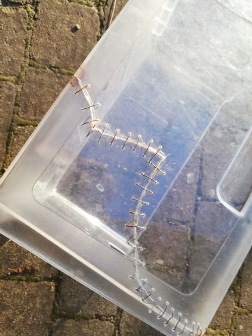 Történt egyszer, hogy rossz helyen hagytam egy kerti széket egy nagyobb holt faág levágásakor, legott szükség lett erre a tanult praktikára. Később egy vendég eltörte a hűtőszekrény egyik fiókját, aminek bosszantóan drága a pótlása, ott is sor került a műanyagvarrásra. De a megrepedt, kidobásból visszamentett zöldséges rekeszeket is így javítom. (A legott elavult szót pedig Herman Ottó egyik szövegéből véve használom újra.)