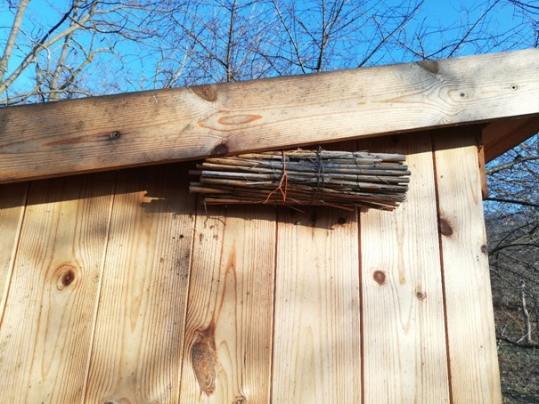 Nagyon jól működő méhbölcső kiállításból bontott, levágott nádfonatból.