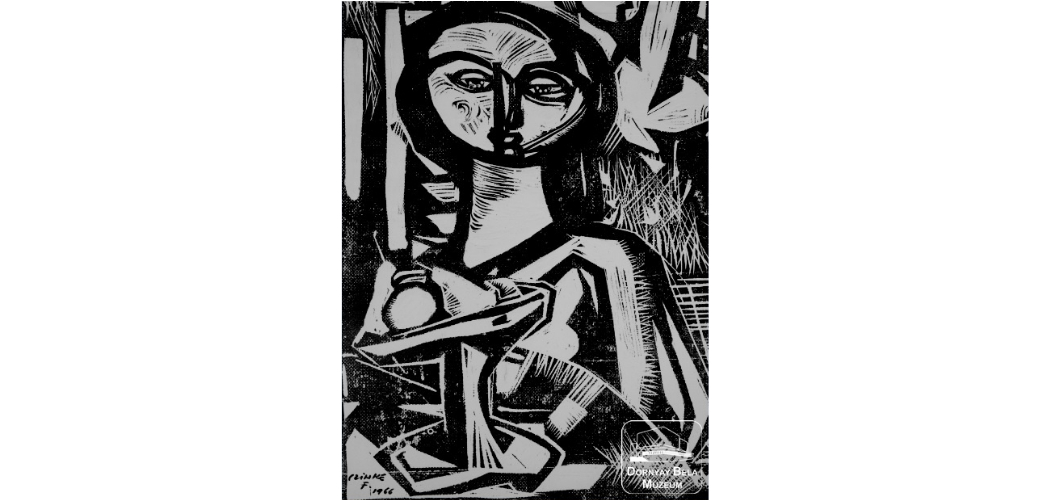 Czinke Ferenc: Lány gyümölcsös tállal, fametszet