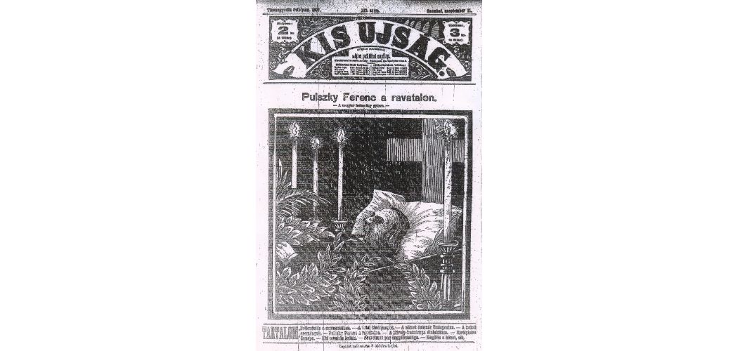 A Kis Ujság címlapja Pulszky Ferenc múzeumi ravatalának ábrázolásával