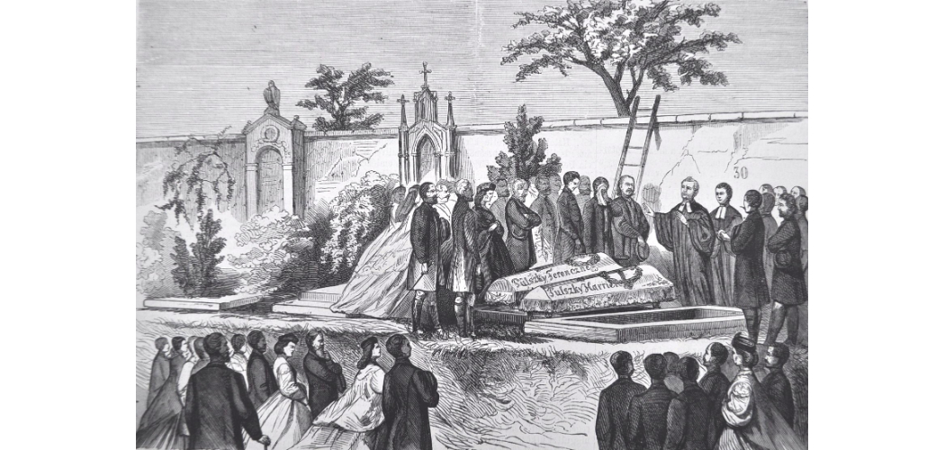 Pulszky feleségének és lányának temetése, 1866 (Magyarország és a Nagyvilág című lap metszete)