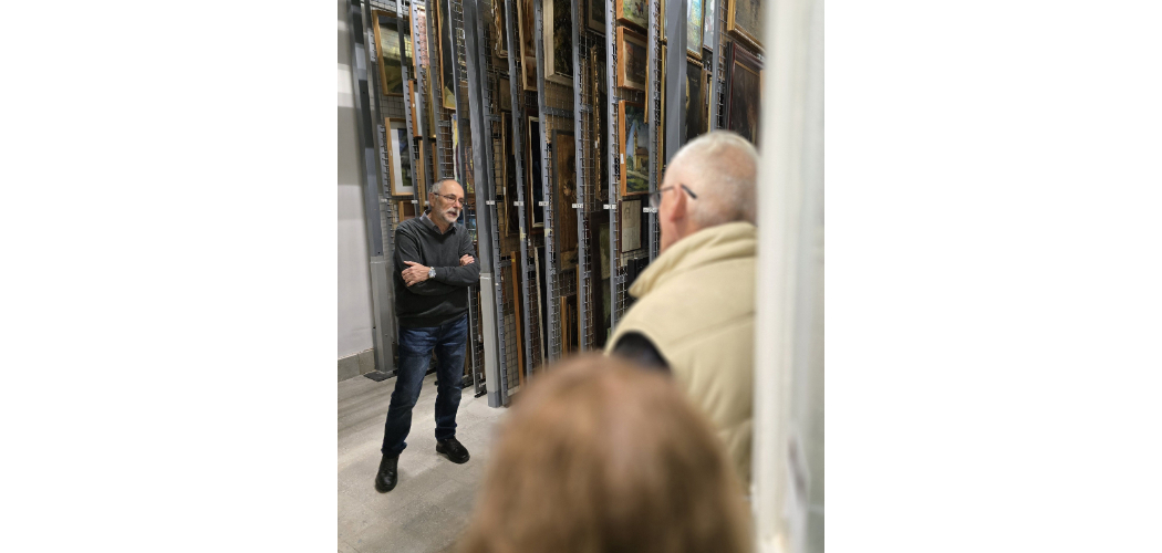 A képzőművészeti raktárban azonnal meglepődést váltott ki a padlótól a mennyezetig érő speciális állványrendszer, ahol katonás sorrendben pihennek a festmények. Dr. Kostyál László művészettörténész a műremekek bemutatása előtt kitért az alkotások helyes tárolására, és mesélt arról az útról, amíg a csavarokkal összeszereltfémpolcos rendszerről végre át lehetett térni a jelenleg is látható megoldásra. A közönség olyan műveket láthatott a teremben, amelyek valamilyen formában kötődnek a gasztronómiához és az étkezéshez.