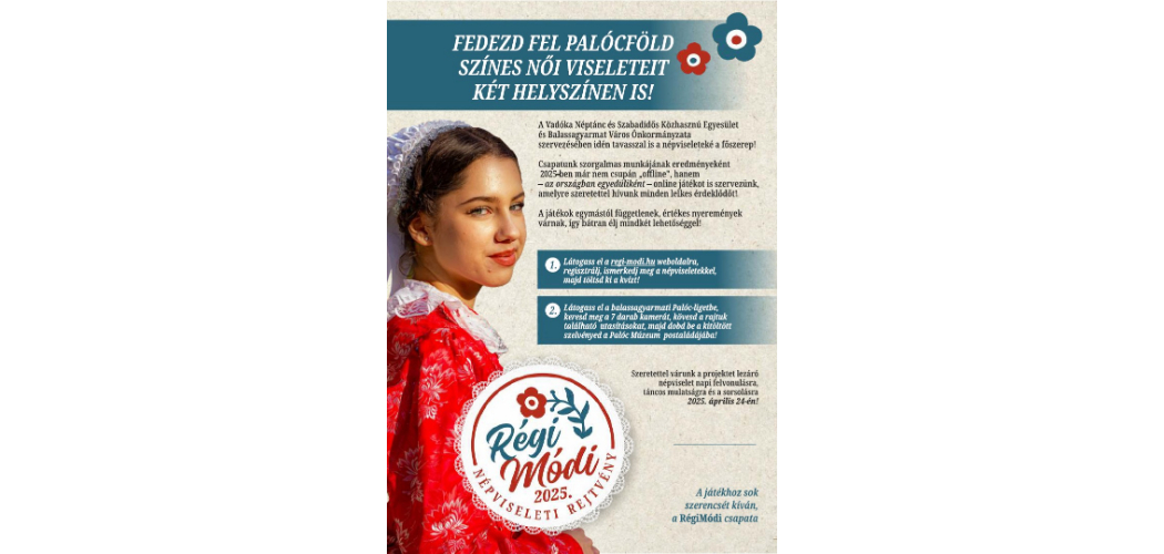 Az országos mozgalomhoz csatlakozva hozta létre 2024-ben a Vadóka Egyesület - Balassagyarmat város támogatásával és a Palóc Múzeummal partnerségben - a Régi Módi című viseletes kvízjátékát Balassagyarmaton. Idén, a játék megálmodói nem kevesebbre vállalkoztak, mint arra, hogy létrehozzák azt a digitális felületet, mely lehetővé teszi az online játékba kerülést.