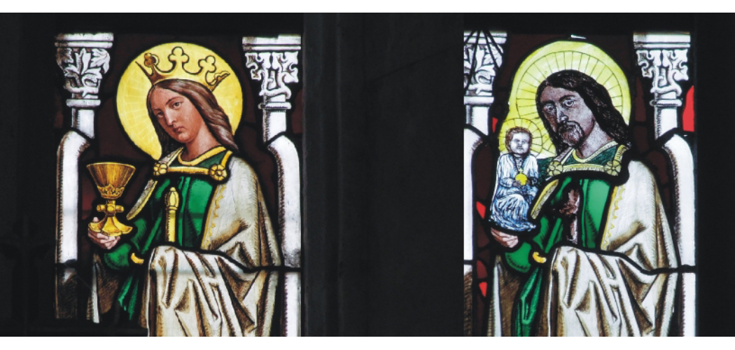 balra: Az eredeti Szent Borbála üvegablak
