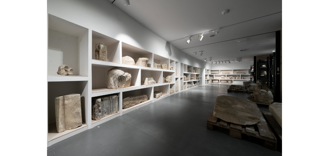 A faragványok méretrendje, díszítőmotívumaik, kőanyaguk segített meghatározni az egymáshoz közelálló, gyakran nagy valószínűséggel azonos szerkezetekhez, épületrészhez, annak díszítéséhez tartozó elemeket. A faragott kövek szétszóródásában rejlő sok bizonytalanság ellenérea kutatók vállalták olyan installációk készítését is, amelyek érzékeltetik az azonos szerkezetekhez tartozónak vélhető darabok szerepét, helyüket az épületen belül. Különösen érvényes ez a 12. században átépített templom és az Anjou-síremlékek esetében.