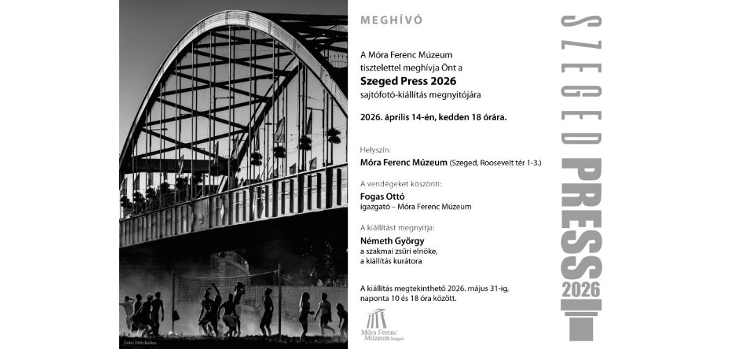 Idén is megrendezik a Szeged Press sajtófotó kiállítást a Móra Ferenc Múzeumban. Az intézmény által meghirdetett pályázatra több, mint ötvenen neveztek, összesen több, mint 380 fotó érkezett be, melyekből a legjobbakat mutatják be a tárlaton. A kiállítást 2026. április 14-én, kedden 18 órakor nyitják meg.