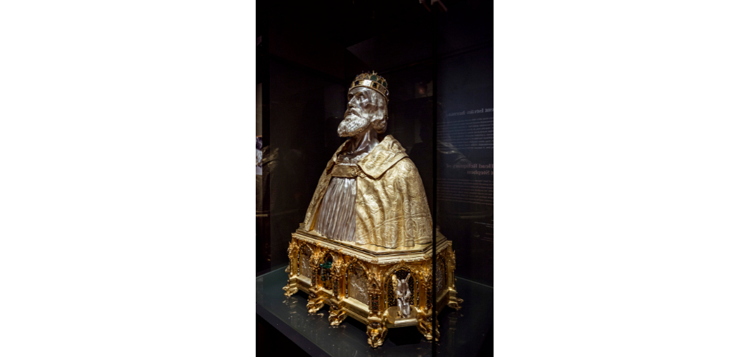 A Szent István-teremhez egy különleges kiállításon keresztül vezet az út a Budavári Palota déli összekötő szárnyának első emeletén. A tárlaton, egyebek mellett, augusztusban kiállították Szent István 1635-ben Rómában készült nagy hermáját is, amely megalkotása óta első ízben volt látható a fővárosban. Talapzatát a korszak legnagyobb szobrásza és építésze, Giovanni Lorenzo Bernini készítette. A zágrábi székesegyház kincstárából kölcsönzött, felbecsülhetetlen értékű barokk ereklyetartót december 6-ig csodálhatták meg a látogatók.