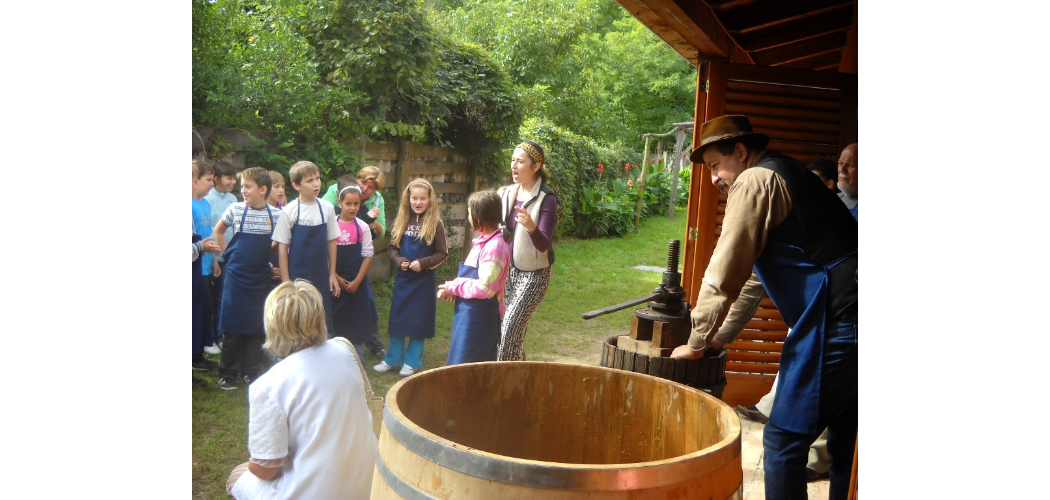 Érik a szőlő, hajlik a vessző… múzeumpedagógiai foglalkozás a Felpéci Tájház udvarán (Felpéc, 2011, DOMBI Alajosné felvétele)