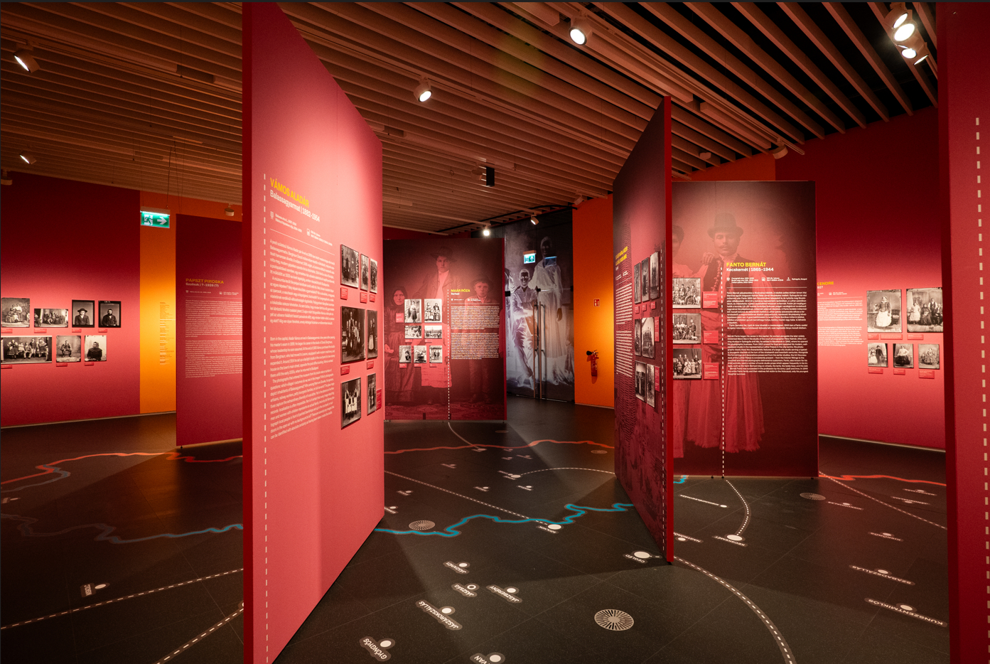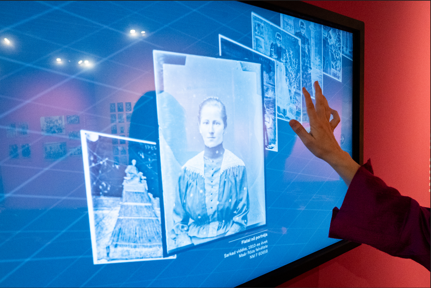 A tárlatrendezés egy külső és egy belső karéjon vezeti a látogatót, egyfelől a fényképész műtermeket számba véve, másfelől az üvegnegatívok tartalmi rétegzettségét feltérképezve, így láthatunk többek között igazolványképeket, esküvői és ravatalképeket, családi portrékat, csoportképeket, paraszti és polgári viseleteket, mesterségeket ábrázoló fotókat csakúgy, mint a háború miatt csonkán maradt családokat a hiányzó férfiakkal ábrázolva. Nem is a Néprajzi Múzeum lenne, ha nem ágyazna meg a válogatás a korszaknak, történeti áttekintéssel, sőt, technikai edukációval, és ugyancsak nem a proaktív intézményről lenne szó, ha a terem sarkában egy óriási falon nem egy QR kódot alkalmazó, a múzeum gyűjteményében szereplő fényképek bővebb és analitikusabb ismeretét lehetővé tévő, interaktív játék mélyítené el az élményt. De van itt digitális fényképböngésző többezer fotóval, mely fontos és különleges eleme a válogatásnak, és kifejezetten Bata Tímea kurátor törekvését dicséri, amiként van kortárs reflexió is: Időugrás címmel Csáky Marianne üvegnegatívra álmodott alkotása az emlékezet és a másodlagos emlékezet fájdalmas erőfeszítéseinek dokumentációja.