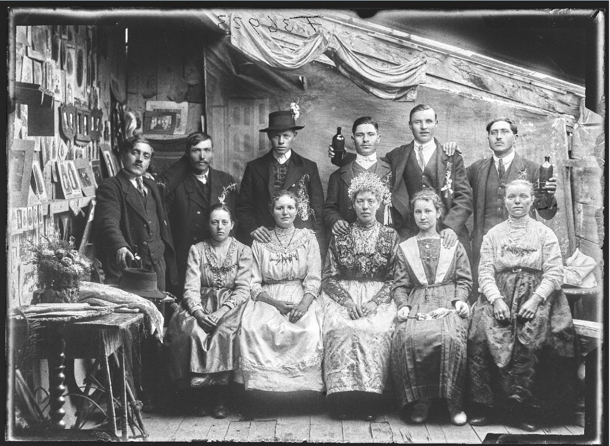Esküvői csoportkép, Szolnok, 1910-es évek, Papszt Piroska felvétele