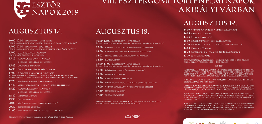 Az MNM Esztergomi Vármúzeuma a korábbi évek hagyományait követve idén 8. alkalommal rendezi meg az Esztergomi Történelmi Napokat, ahol a győztes csatából hazaérkező királyi sereg tiszteletére háromnapos ünnepen és összecsapásokon vehetnek részt az érdeklődők.