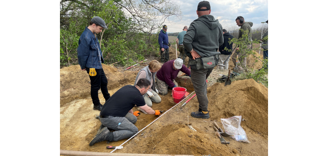 A leletmentő feltárás a PPKE régészhallgatóival és a Közösségi Régészeti Egyesület önkénteseivel; fotó: Füredi Ágnes