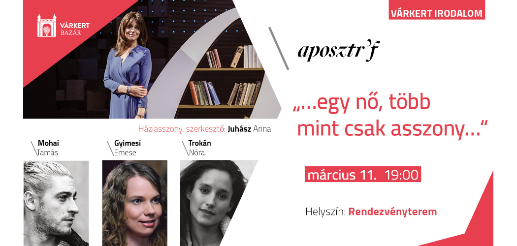 A Várkert Irodalom Aposztróf Est sorozatának keretében látható az „…egy nő, több mint csak asszony…” című előadás március 11-én a Várkert Bazár rendezvénytermében, ahol betekintést nyerhetnek a nézők a történelmünket meghatározó nők gondolataiba, életébe, valamint megidézik Szendrey Júlia naplóját és levelezését is.