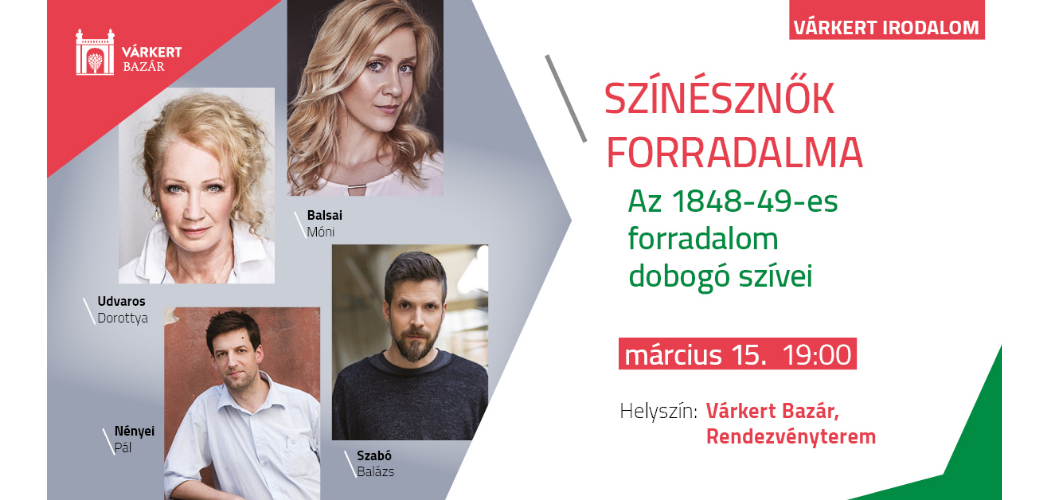Március 15-én este a Várkert Bazárban 19 órától látható a Színésznők forradalma című előadás, amelynek segítségével visszarepülhetünk a reformkorba és megtudhatjuk, hogy korunk hat híres írónője miként bújt az 1848-49-es forradalom legnevesebb nőalakjainak bőrébe.