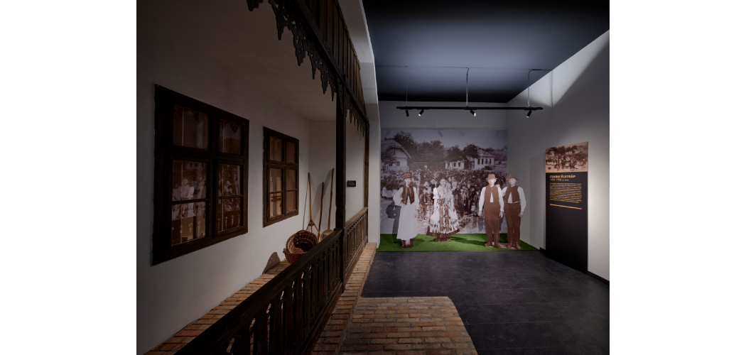A kiállítás a múzeum alagsori tereiben a tárgyak bemutatását fókuszba helyező absztrakt kiállítási installációval épült fel, míg a földszinti terekben felépített, tornyok, házak, padlás, falu és város megépített környezeteként látványosan mesél és a kiállítási tartalom szerves részeként segíti a történetmesélést.