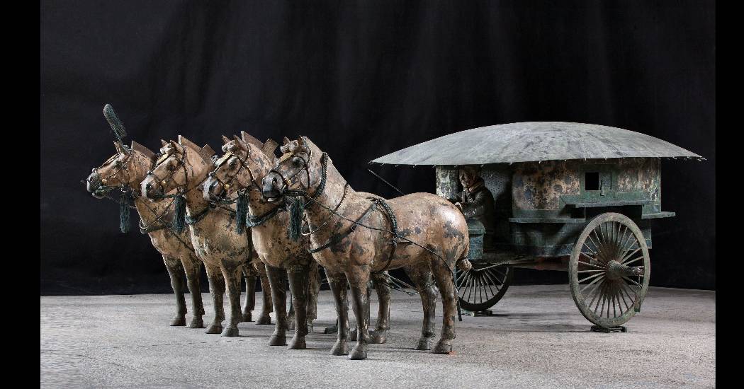 „Csin Si Huang-ti nagy eltökéltséggel kutatta az öröklét titkát…” – olvashatjuk dr. Fajcsák Györgyi kurátori szavait, melyek szépen megágyaznak a túlvilágra vivő lovaskocsik és rituális tárgyak megrajzolta narratívának. Merthogy Csin Si Huang-ti, uralkodása alatt nem csupán katonai hatalmat épített, de a kozmológiai és misztikus tudást, hitet, tapasztalást is fürkészte. Az ősi kínai gondolkodásban a halál utáni életre való felkészülés nem csupán rítus volt, sokkal inkább egyfajta személyes, kérdés nélkül való elköteleződés, és Csin Si Huang-ti, e felkent elköteleződés okán, az örökkévalóság elixírjét kereste. A sírkamrába helyezett kincsek, a terrakotta sereg tehát egyfajta révésze, mementója az utazásnak, mely a végtelenbe visz - és még annál is tovább.