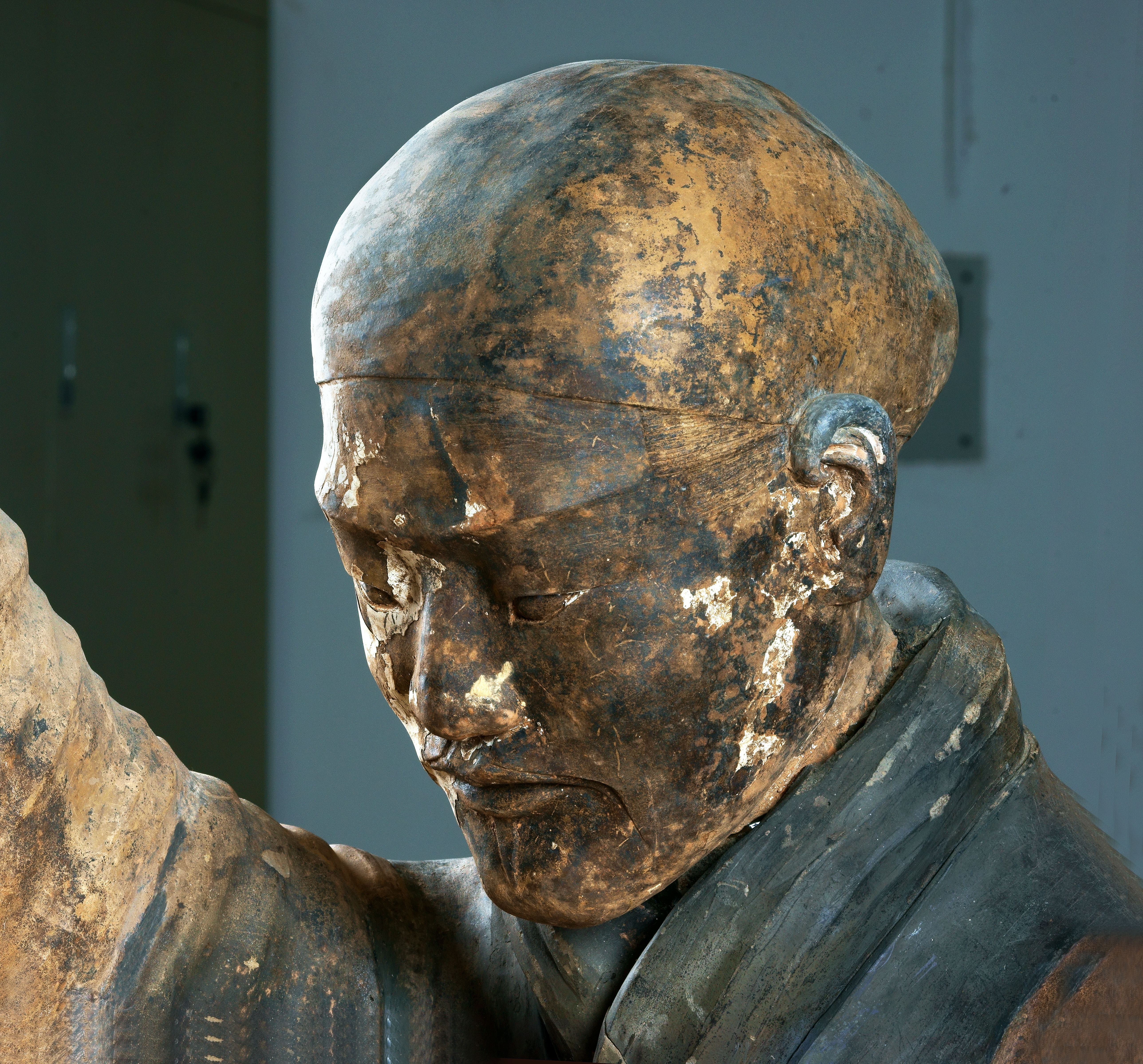 Az eredetileg festett terrakotta hadsereg nem dísz, hanem funkcionális túlvilági hadsereg, nem szoboregyüttes, hanem törékeny műtárgy kollekció, mely speciális klímával felszerelt ládákban érkezett hozzánk, és melynek kicsomagolásánál restaurátorok, kurátorok, biztonsági szakemberek segédkeztek, mintha ezzel a háttérfolyamattal is azt üzennék: az öröklét eszményének fenntartása folyamatos emberi gondoskodást igényel. Nincs két egyforma arc, testtartás, kéztartás, nincs két ugyanolyan páncél, mindegyik figura rangot, funkciót, fegyvernemet is jelképez, amiként minden egyes katona önálló individuum, szépen szimbolizálva, hogy a halál utáni szolgálatban is az egyén, a jól elkülöníthető és különbözőségében csodálatos entitás az, aki végsősoron szolgál, őriz, védelmez. A kurátori munka érzékeny, okos és alázatos - álljon itt még egyszer dr. Fajcsák Györgyi orientalista kutató neve, kiegészülve asszisztensével Bagi Judit sinológussal, hála nekik, - a temetkezési kontexusból fennmaradt szakrális válogatás elrendezése nem egyszerűen térrendezés és látványtervezés volt, hanem felelősségvállalássá nemesedett, felelősségvállalássá egy többezeréves kulturális örökségért.