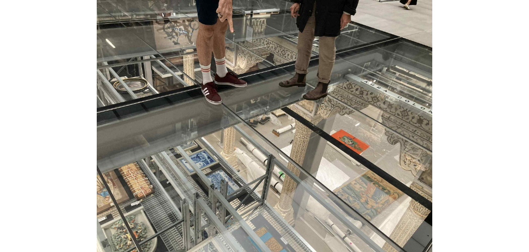 Múzeumokban tevékenykedő kollégáknak szívből ajánlott a belépés, élmény látni a professzionálisan csomagolt és biztonságba helyezett tárgyak sorát. A központi 20 méter magas Weston csarnok nyilvános útvonalat biztosít, ami részben rácsozat, részben üvegfelület, s innen fantasztikus a rálátás a földszinti Agora oszlopsorra.
