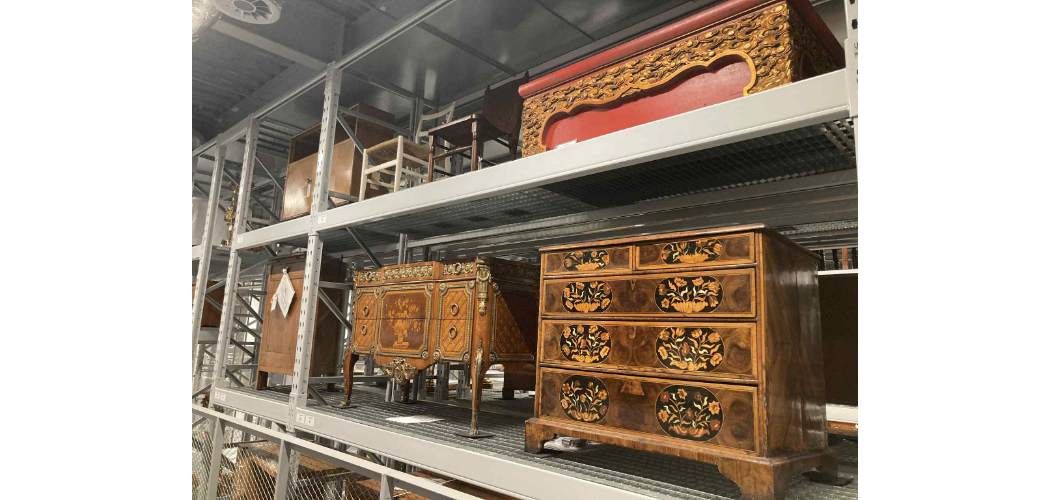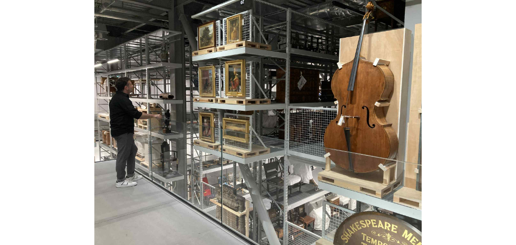Az épület harmadik szintjén üvegezett erkélyen és élő közvetítésen keresztül figyelhető meg a restaurátorok és gyűjteménykezelők munkája. A helyszínen éppen 19. századi öltözékeket rendeztek precízen a csomagolásukba. A földszinten pedig mozgásba hoztak egy targoncát, hogy a tökéletesen rögzített műtárgyat a polcrendszer megfelelő szintjére emeljék.