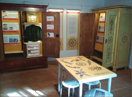 Az interaktív kiállításban a szekrények belsejéből 5 kiállítóteret képeztek, 5 különböző téma köré csoportosítva a tárgyakat: az első a németek betelepítését majd elűzetését[3] mutatja be; a második az emberélet rítusairól szól; a harmadik az év jeles napjait veszi át; a negyedik arról mesél, milyen volt a gyermekek élete; az ötödik pedig a bútorfestés és restaurálás titkaiba vezeti be a látogatókat. Minden szekrény tartalmaz a sok képi és tárgyi anyag mellett, megfogható, kipróbálható eszközöket is; sőt a fali kivetítőn filmes anyagok is megtekinthetők: készült interjú az egyik szekrény tulajdonosával is.