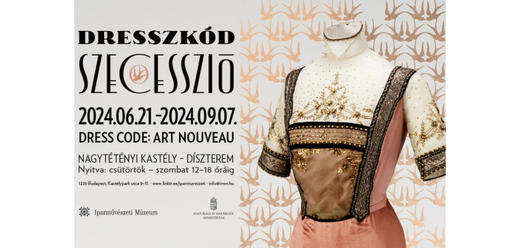 A Dresszkód: szecesszió című vándortárlat 2024. szeptember 7-ig látogatható a Nagytétényi Kastély (1225 Budapest, Kastélypark utca 11.) Dísztermében csütörtöktől szombatig, 12 és 8 óra között.