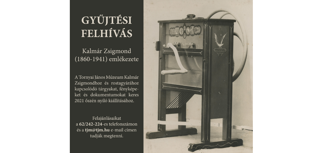 A hódmezővásárhelyi közgyűjtemény Kalmár Zsigmondhoz és rostagyárához kötődő dokumentumokat és fényképeket, illetve a gyár termékeit keresi a tárlatra; a gyűjtési felhívásra jelentkezni a múzeum központi elérhetőségein, a +36 62 242 224-es telefonszámon vagy a tjm@tjm.hu e-mail címen lehet.
