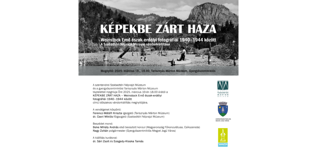 Újabb állomásához érkezett a szentendrei Szabadtéri Néprajzi Múzeum vándorkiállítása. 2025. március 19-én 18 órakor nyílik Gyergyószentmiklóson Weinstock Ernő Képekbe zárt haza című kiállítása. A tárlat a Tarisznyás Márton Múzeumban látható és Weinstock Ernő 1940 és 44 között Észak-Erdélyben készült fényképeit mutatja be.