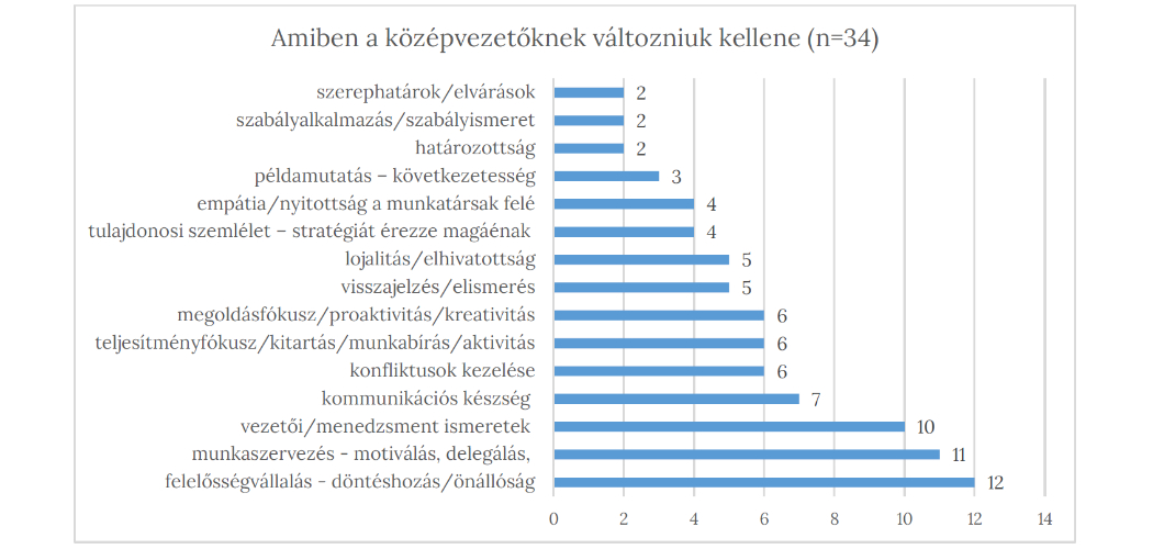 A középvezetők szakmai és kompetencia fejlesztési szükségessége a mélyinterjús kutatásban is megjelent. A válaszadók ezt azzal indokolták, hogy sok középvezető a szakmai háttere miatt kapott vezetői tapasztalat nélkül vezetői megbízást, és a kinevezéssel nem járt együtt a vezetéshez szükséges ismeretbővítése és a vezetői képességének fejlesztése.