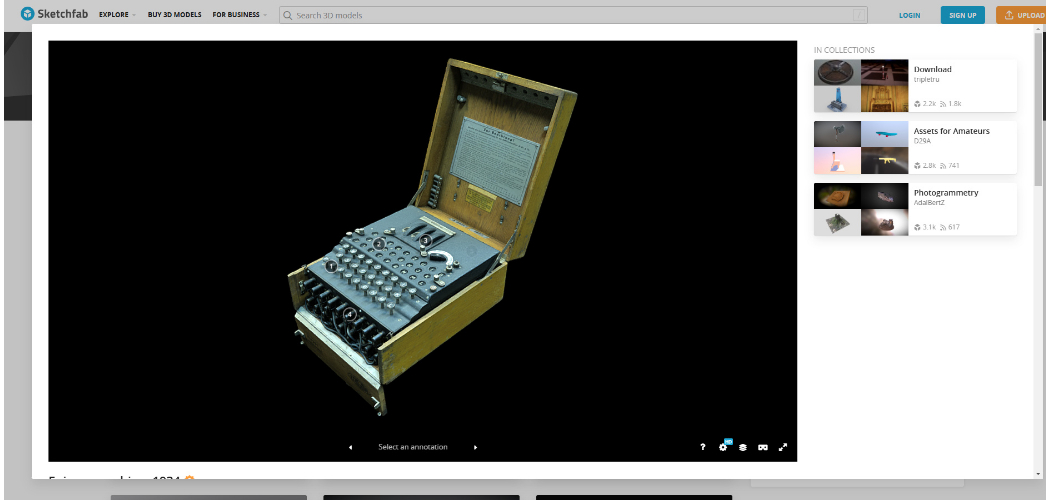 Például a Sketchfab platformon böngészve – ahová a Szépművészeti Múzeum is feltölti a 3D modelleket – a virtuális térben találkozhatunk többek között a németek által kifejlesztett Enigmagéppel, Stephenson lokomotívjával, Neil Armstrong űrhajós szkafanderével, egy amerikai űrsiklóval, egy lengyel falu rekonstruált másával, egy béka CT által leképezett modelljével, egy könyvtárszoba enteriőrjével, egy sziklás tengerparttal, vagy az ír régészek által feltárt temetkezési halmokkal, és a sort hosszasan folytathatnám.