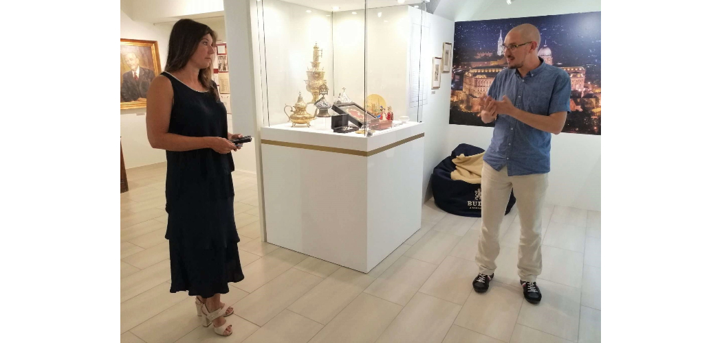 Hossó Nikoletta nemzetközi protokoll szakértő és Dr. Török Róbert muzeológus, a kiállítás kurátora közösen tartanak tárlatvezetést a kiállításban