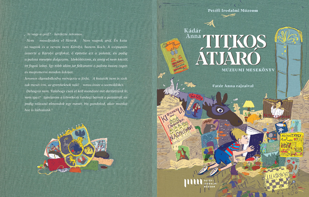 A projekt során megszületett a Titkos átjáró című kiadvány. A résztvevőket is bevonó sajátos munkamódszer a mesekönyv kerettörténetében is visszaköszön, amely egy kutató és egy 9 éves kisfiú dialógusára épül. Megállapodásuk szerint a kisfiú bármiről kérdezhet a múzeum és palota kapcsán így kijelölve a kutató számára a következő mese témáját. A foglalkozások, családi napok, táborok során formálódó karakterek egy-egy múzeumi mese főszereplői lesznek, hogy végül a Petőfi Irodalmi Múzeum nevének mindhárom szavához és a múzeumnak otthont adó Károlyi palotához is tartozzon egy-egy kaland. A mesék szereplőit Fatér Anna fantasztikus karakterrajzai és könnyed humorú részletgazdag illusztrációi keltik életre.