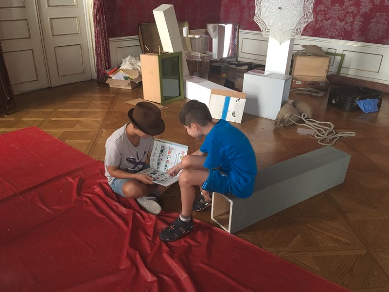Hogyan lehet egy egykori főúri palota termeit 9 – 12 év közötti gyerekek számára izgalmassá, felfedezésre váró térré alakítani? Hogyan lehet az élettörténet-tárgyak, első pillantásra talán nehezen hozzáférhető, kincs-jellegét, a bennük szunnyadó történeteket felszínre hozni? Miért fontos az irodalom? Milyen szempontokból közelíthető meg, értelmezhető, formálható egy kiállítás terévé bármi, ami irodalom?