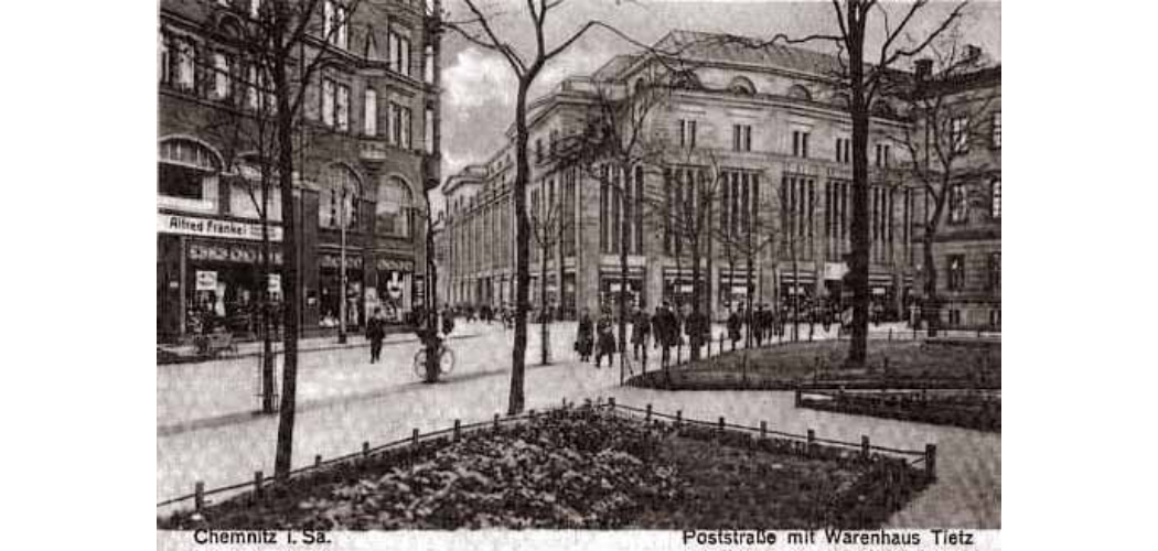 Chemnitz hamarosan felsorakozott az aktuális trendhez. A 4 emeletes Tietz-áruház hatalmas épülettömege vasbeton vázszerkezettel épült. A belső tér központi eleme a nagy átrium, amelyet másik két kis átrium szegélyez. A belső berendezési tárgyak, a padlóburkolatok, falburkolatok, üvegezések, tükörfelületek, világítótestek, bútorok a legmodernebb ízlést testesítették meg. A rendkívül reprezentatív épületet a chemnitzi építész, Erich Basarke tervei alapján 1926-27-ben kibővítették.