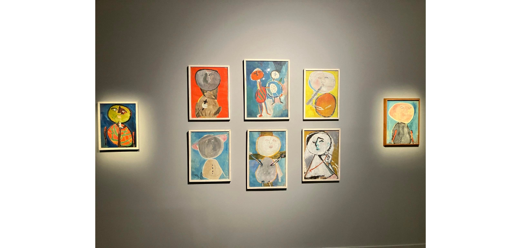 1947/48-ban óriási fejeket kezdett el festeni, bennük kiáltó arcok, bábuk, amelyek mind őt személyesítik meg. A túlzóan nagyfejű ábrázolásokon üres tekintetű, fehér szemek érzékeltetik a fájdalmat, keserűséget. A kiállításban látható Múzsa, Bábu II. és a Kiáltás című képek szimbolikusan Ámos Imre utolsó képeivel szemben vannak elhelyezve. Így a látogató, a két ember utolsó, egymáshoz fűződő érzései között találja magát.