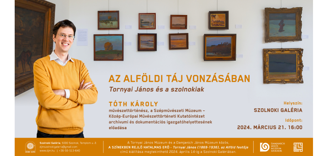 2024. március 21-én 16 órakor Tóth Károly művészettörténész, a Szépművészeti Múzeum – Közép-Európai Művészettörténeti Kutatóintézet archívumi és dokumentációs igazgatóhelyettese tart előadást A színekben rejlő hatalmas erő – Tornyai János (1869–1936), az Alföld festője című kiállításhoz kapcsolódva. A Tornyai János Múzeum és a Damjanich János Múzeum közös kiállítása 2024. február 8-án nyílt a Szolnoki Galériában és több mint két hónapon át, egészen április 14-ig látogatható.