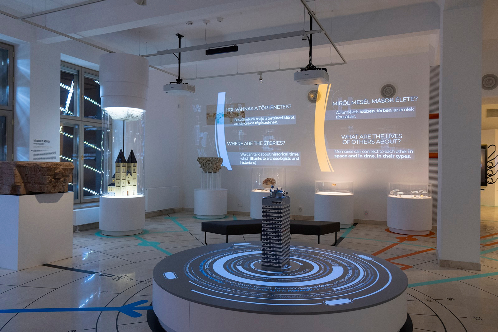 A kiállítás megkapó látványtervezése és karakteres grafikai arculata különleges atmoszférát nyújt a tereknek és rendkívül jó összhangban áll a digitális felületek grafikájával. Kellemes arányban váltja egymást a hagyományos témafeldolgozással és interaktív elemekkel, vetítésekkel bemutatott tartalom, így ezekkel a pihenőpontokkal megszakítva könnyebb befogadni a gazdag anyagot. Fontos kiemelni a várkút leleteit remekül megjelenítő installációs megoldást. A kút formáját megidéző vitrinben az érmék behullásának időbeliségét nagyon jól reprezentálja – az adatfizikalizációnak is tekinthető – rétegzett elhelyezés. Így az pénzérmék forgalomba bocsátásának, használati korának évszám-adatait látványos, könnyen érthető információvá alakítja az installáció. Továbbá a kapcsolódó szöveg a kútba dobott pénzek hagyományáról és azok régészeti jelentőségéről remekül egybefűzi a tudományt a hétköznapi turista-élményekkel. A jópofa óriás mobiltelefonokat idéző érintőképernyős felületek is hosszas böngészésre, kutatásra ösztönöznek. Ezeken a látogatók hétköznapi életének bevonására szintén nagyon jó megoldást találunk, mint például a közelmúlt régészeti lelőhelyeinek megkeresése a város mai szövetében, amely kiválóan összekapcsolja a családi emlékezetben még ma is aktív ötvenhatos vagy világháborús eseményeket a mindennapi környezettel. Szintén látványos és higiénikus megoldás a hangzó anyagok szócsöve, melyek fogdosás, fülhöz érintés nélkül használhatók, de meghallgatásuk nem zavarja a többi látogatót. A kiállítás több ponton szemléletesen, mai párhuzamok felállításával teszi a széles közönségnek is könnyen befogadhatóvá a tartalmat. Ilyen például a Vetési Albert püspöknek ajánlott faragott kő betűtípusának értelmezése, amely a tipográfia segítségével magyarázza meg, hogy a képrögzítés előtti időkben hogyan hagytak nyomot magukról az emberek.