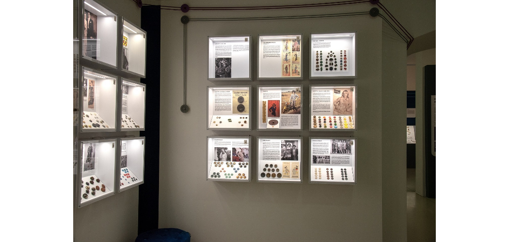 A kiállításon az anyaghasználat és technológia sokszínűsége mellett megismerkedhetünk egyes viseletek (pl. egyenruhák, főnemesi öltözékek) gombokon keresztül képviselt jelentésrétegeivel is.